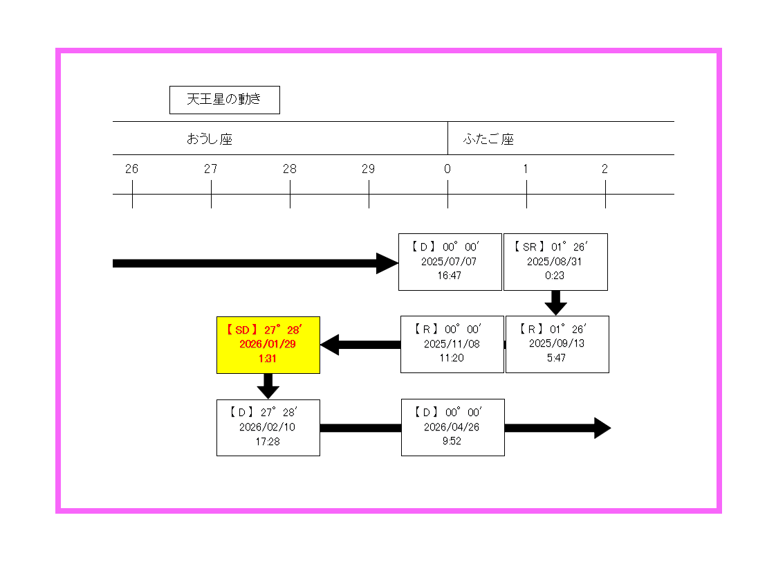 ・ 1/29 天王星 逆行 → 順行の留(おうし座 27度)