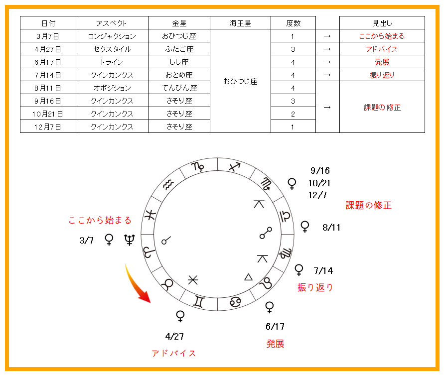 2026年2月以降の海王星と金星のアスペクトは以下になります。